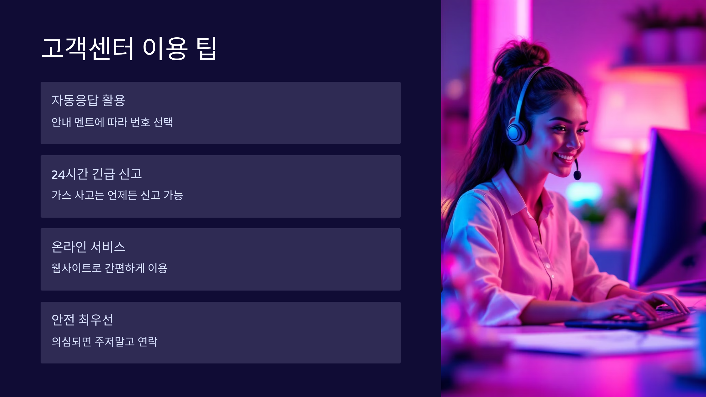 무엇보다 중요한 건, 혹시라도 가스 누출 같은 긴급 상황이 생겼을 때! 그때는 진짜 망설이지 말고 바로 전화해야 해요. 가스 냄새가 갑자기 심하게 난다거나, 가스 기구가 제대로 작동하지 않는 것 같을 때는, 안전을 위해서라도 즉시 고객센터에 연락하는 게 중요해요. 안전이 제일 중요하니까요!