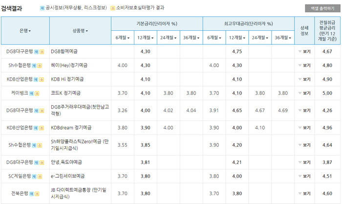 은행연합회 홈페이지에서 시중에서 영업을 하고 있는 상품들의 예금금리 가장 높은곳을 비교하여 찾을 수 있습니다. 기준금리보다 높은 경우가 많아서 여러분이 만족할 수 있는 상품을 쉽게 가입할 수 있는 곳을 찾으시면 될것 같습니다. 적금이나 예금과 같이 계획적으로 상품을 운영하면서 시간을 들여야하니 선택이 중요합니다.