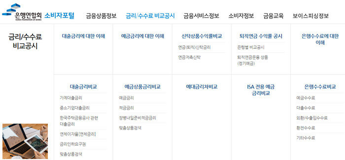 금리 수수료 비교에 보시면 은행 예금금리와 적금금리에서 가장 높은 곳을 찾을 수 있게 정리를 해줍니다. 예전에는 낮아서 크게 신경쓰지 않았지만 요새는 1% 넘게 차이가 나는 경우도 있어서 시간이 걸리더라도 직접 찾아보시면 더 좋은 곳을 찾을 수 있습니다.