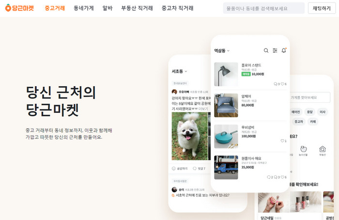 당신 근처의 마켓이라는 의미를 가지고 있는 중고거래 플랫폼으로 동네의 사람들과 정을 나눌 수 있습니다. 확인을 하고 거래를 하는 방법으로 사람들과 이야기를 나누며 관심사를 공유할 수도 있습니다. 좀 더 특별한 중고거래로 아껴쓰는 마음이 더 해집니다.