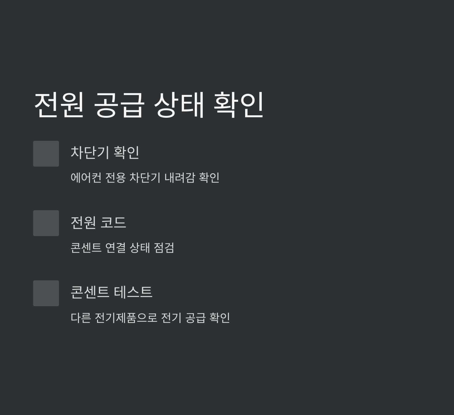에어컨 전원이 갑자기 켜지지 않을 때 첫 번째 확인 사항은 무엇인가요?