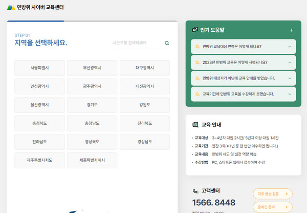 자신이 주민등록을 하고 있는 거주지를 선택하고 이름과 생년월일, 본인인증을 거치고 나면 민방위 사이버교육을 들을 수 있습니다. 1년동안 한번 교육을 받으면 완료되지만 불참시 과태료가 10만원 부과됩니다.