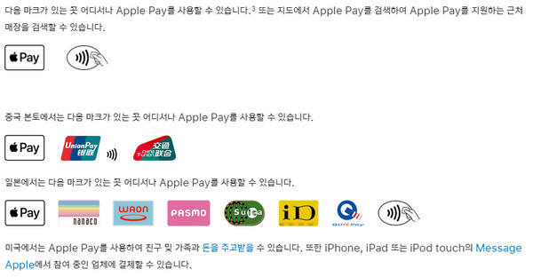 애플페이를 사용할 수 있는 곳