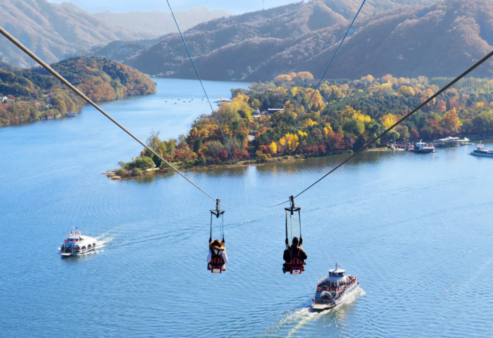 남이섬에 들어가는 색다른 방법으로 와이어를 이용하는 방법이 있습니다. 하늘을 날아가는 짚와이어는 배를 타고 들어가는 방법보다 입장료가 비싸지만 스릴있는 경험을 할 수 있습니다. 49900원으로 이용할 수 있는 와이어는 들어갈때만 타실 수 있고 나오실때는 일반적인 퇴장방식인 배를 타고 이동을 합니다.