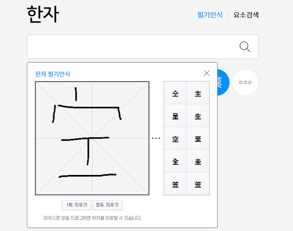 앞에서 이야기한 그려서 한자 찾기에 대해 알아보겠습니다. 한자사전이나 다음사전앱은 사용자가 직접 화면에 한자를 그리면 그에 해당하는 한자를 찾아주는 기능을 제공합니다. 이러한 방식은 획수가 많거나 복잡한 한자를 찾아야 할 때 또는 획수를 정확히 모르는 경우에도 한자를 찾아내는 데 유용합니다.