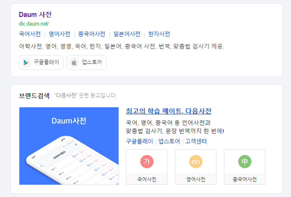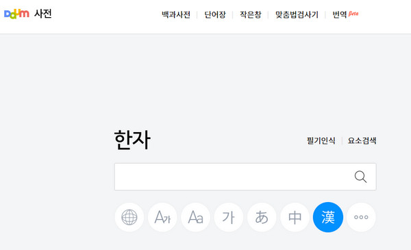 다음에서는 많은 서비스가 제공되고 있습니다. 여기서 오른쪽에 있는 사전에서 한자 찾기를 할 수 있습니다. 종이로 된 과거와 다르게 디지털로 깔끔하게 정리되어 있습니다.