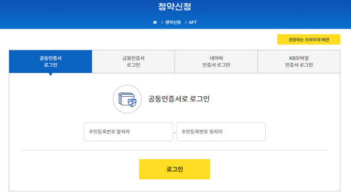 처음에는 본인인증을 하는 절차입니다. 공동인증서와 금융인증서, 네이버 인증서, kb모바일 인증서를 사용해 청약홈 홈페이지에 로그인할 수 있습니다. 주택청약 연습도 실제와 같이 동일하게 진행되어 본인 확인을 먼저 하니 프로그램을 설치하시면서 진행을 해보세요.