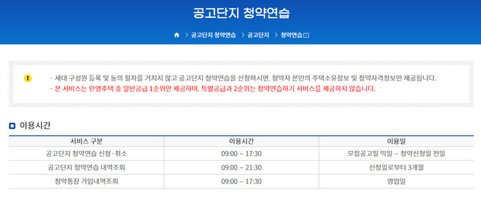본론으로 넘어가서 실전에 앞서 연습을 해보면 잘하고 있는지 무엇을 빼먹지는 않았는지 생각해볼 수 있습니다. 공고단지 청약연습이라는 메뉴에 들어가시면 실전과 같은 방식으로 사전에 연습하는 방법을 이용해볼 수 있습니다. 우리나라에서 주어지는 최고의 혜택 중 하나라서 꼭 이용해보고 인생을 살아가셨으면합니다.